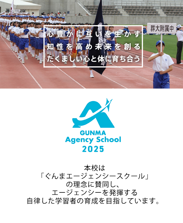 【教育目標】◎心豊かに互いを生かす(共生)◎知性を高め未来を創る(創造)◎たくましい心と体に育ち合う(健康)