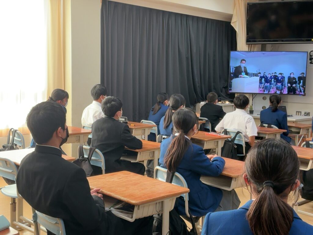 11月21日(金)に、旧本部企画委員の退任と新本部企画委員の承認を目的とした学友会総会が行われました。旧本部企画委員の退任のあいさつでは、一人一人がこれまでの活動や行事の運営に込めた思いや本部企画委員として活動した経験から学んだこと等について熱く語りました。旧学友会長は、「様々な壁も仲間の支えを通して乗り越えることができた。これからも学友会目標の達成に向けて努力をしていきたい。」と語りました。