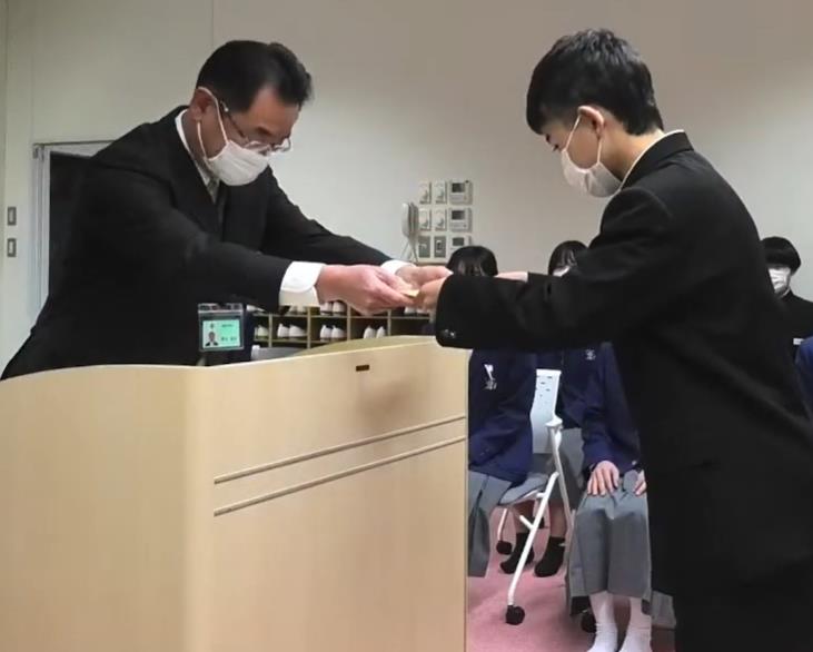 新本部企画委員の承認では、委員一人一人に栗本校長から認証が、緑花隊長に依頼書が手渡されました。その後行われた、新本部企画委員就任のあいさつでは、新学友会長が代表して壇上に立ち、これまでの附属中の伝統を生かしつつ、新本部企画委員で頑張っていきたいという思いを語りました。