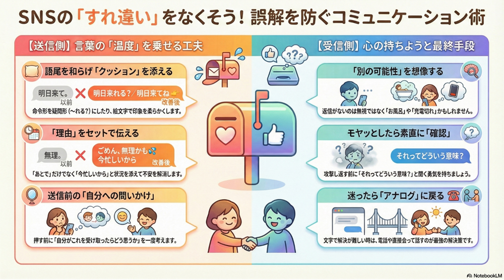 生徒たちは、言葉に「温度」を乗せる工夫を学びました。「送信前に文章を見直し、語尾や言葉の意味を確認する」といった送信側の配慮だけでなく、「既読がつかなくても被害妄想せず、お風呂や充電切れなど別の可能性を想像する」という受信側の心の余裕も大切であるということに気づくことができました。また、文字だけで解決しようとせず、電話や対面といった「アナログの良さ」を活かす重要性も再認識しました。